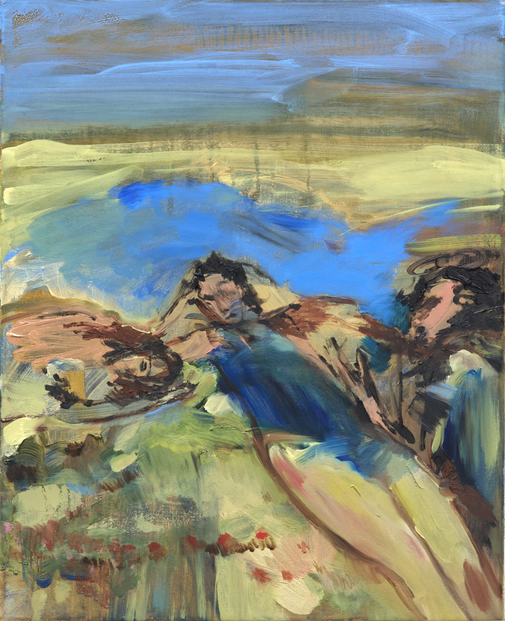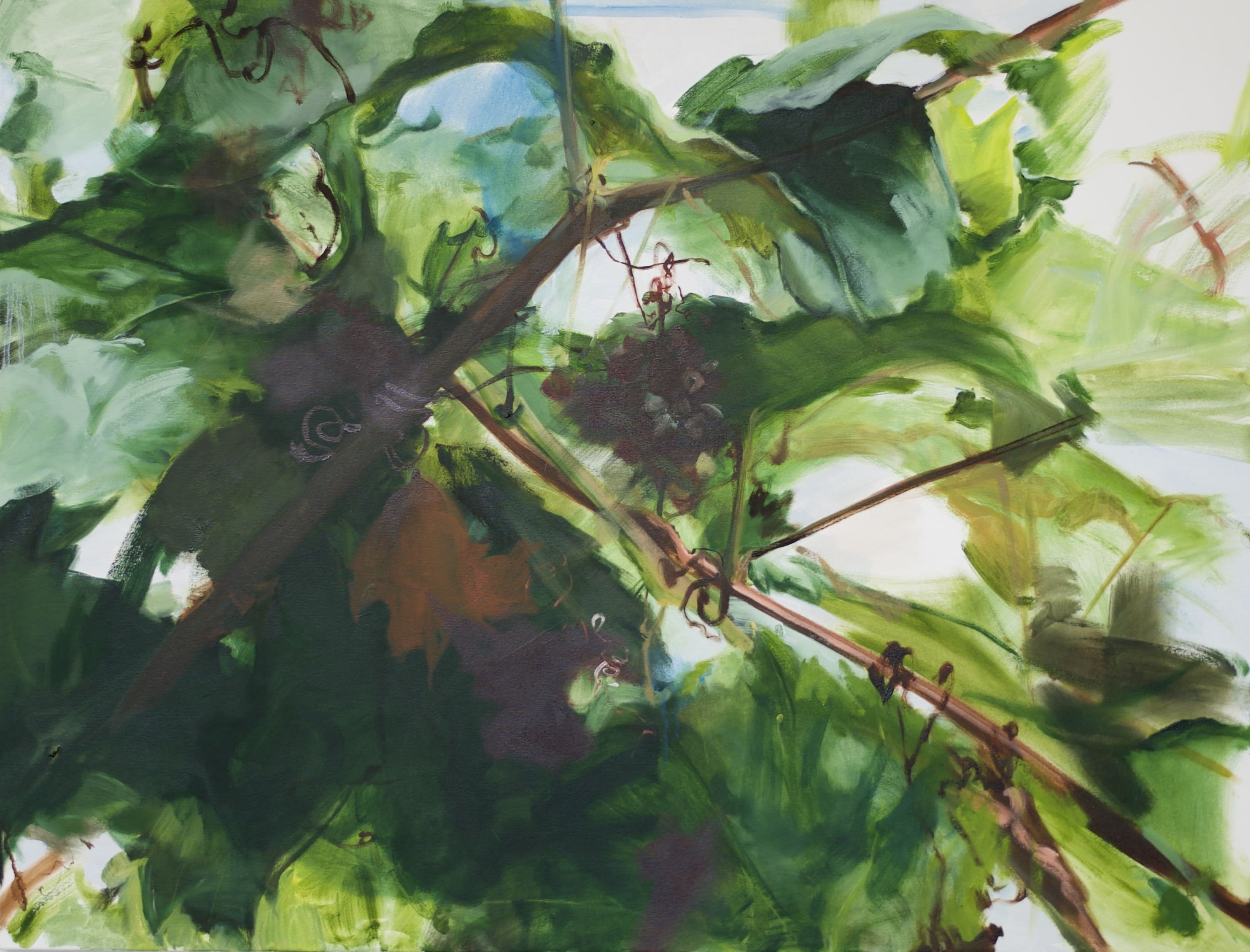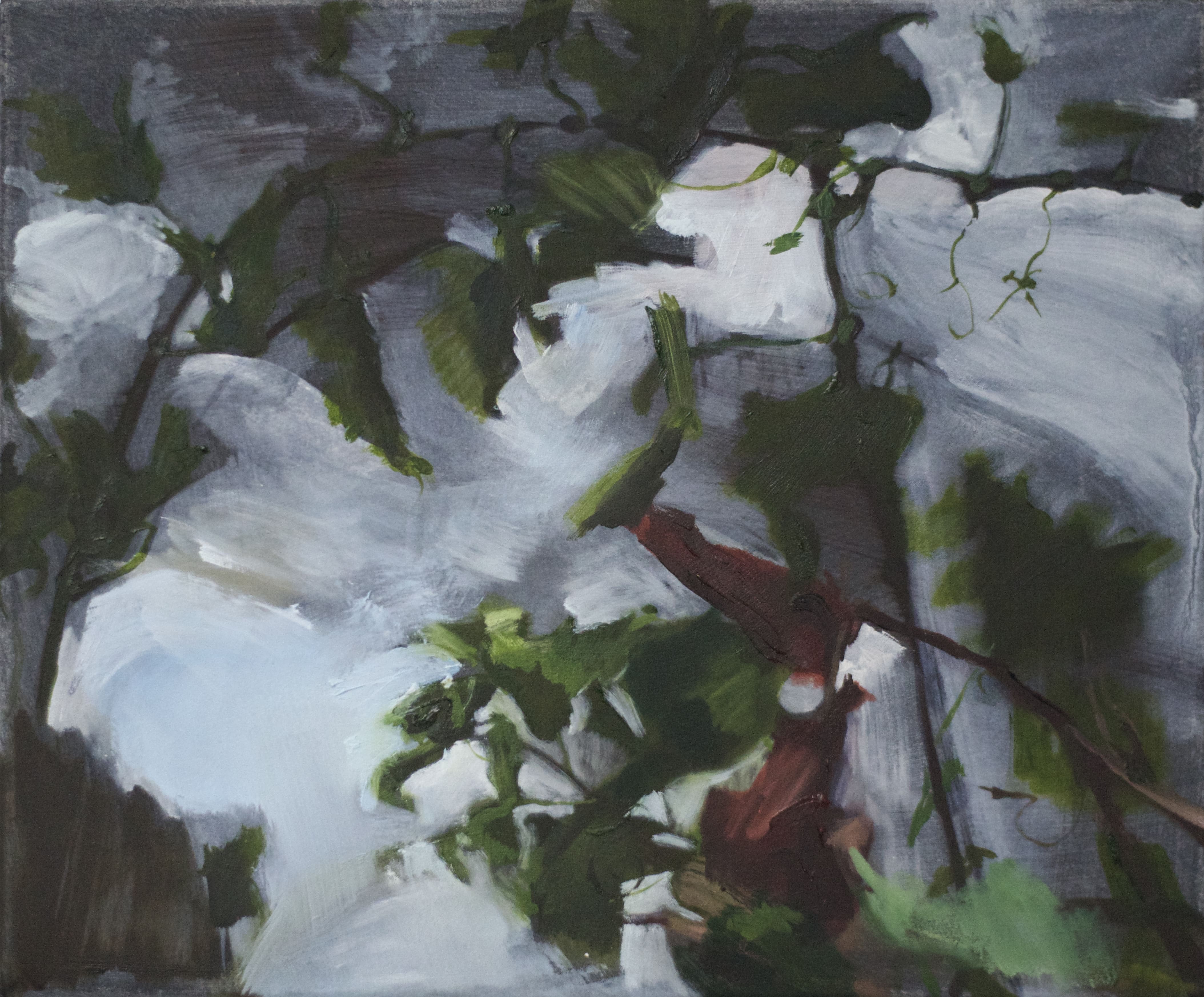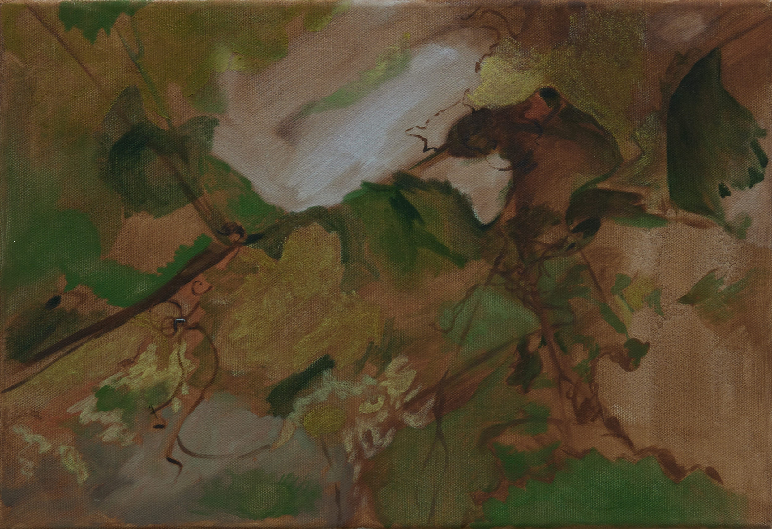My paintings are possibly the residue from this decantation, the gritty, agitated liquid that gets swirled around in the process, each picture a brief retention of what has passed. A painted mark can contain the trigger for what Proust calls involuntary memory, the sudden wave of experience that comes without direct effort on the rememberer’s part, the past story that comes rushing back and is felt and experienced anew, more accurately than if pulled out like picking a garment off the wash line.