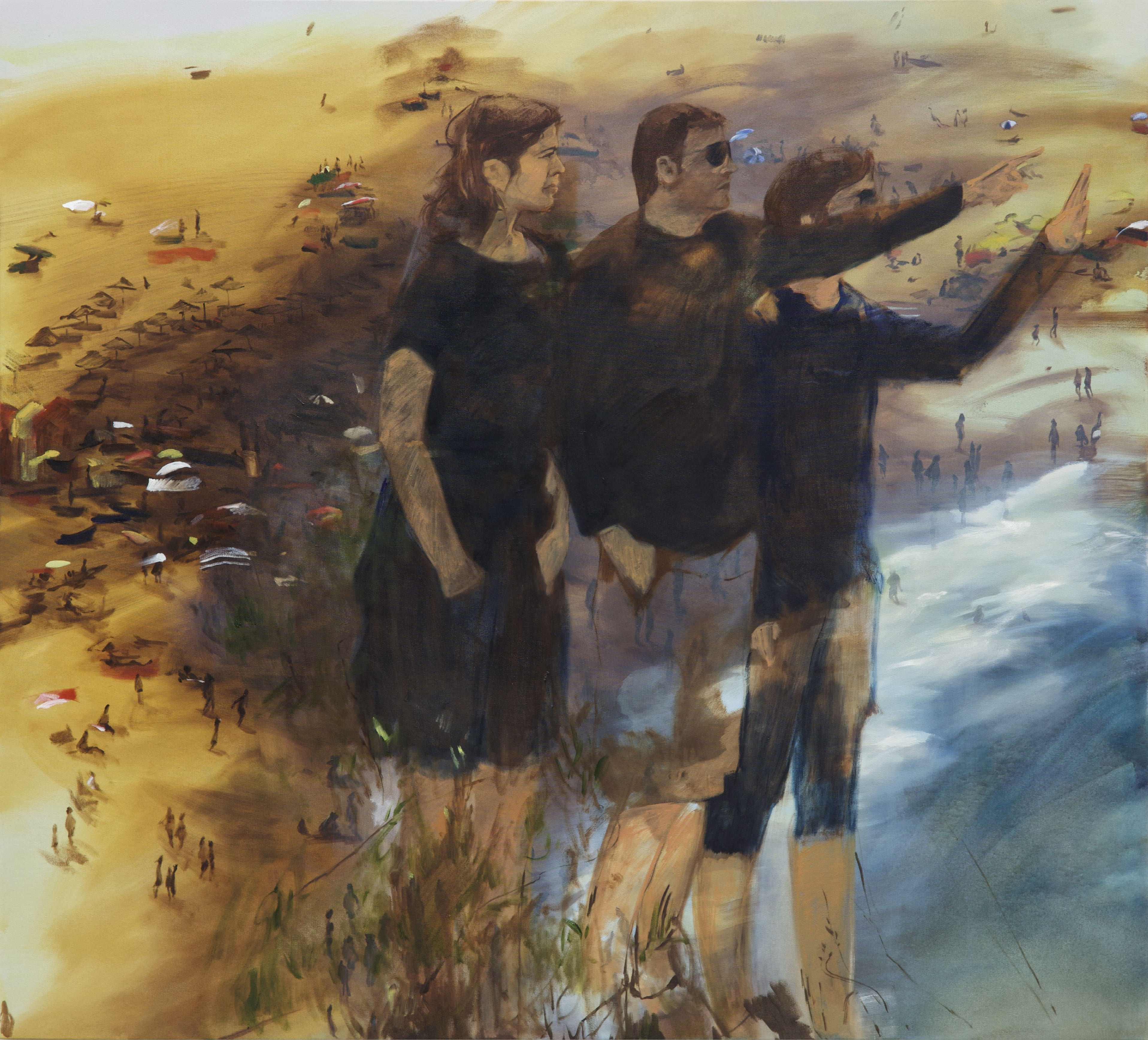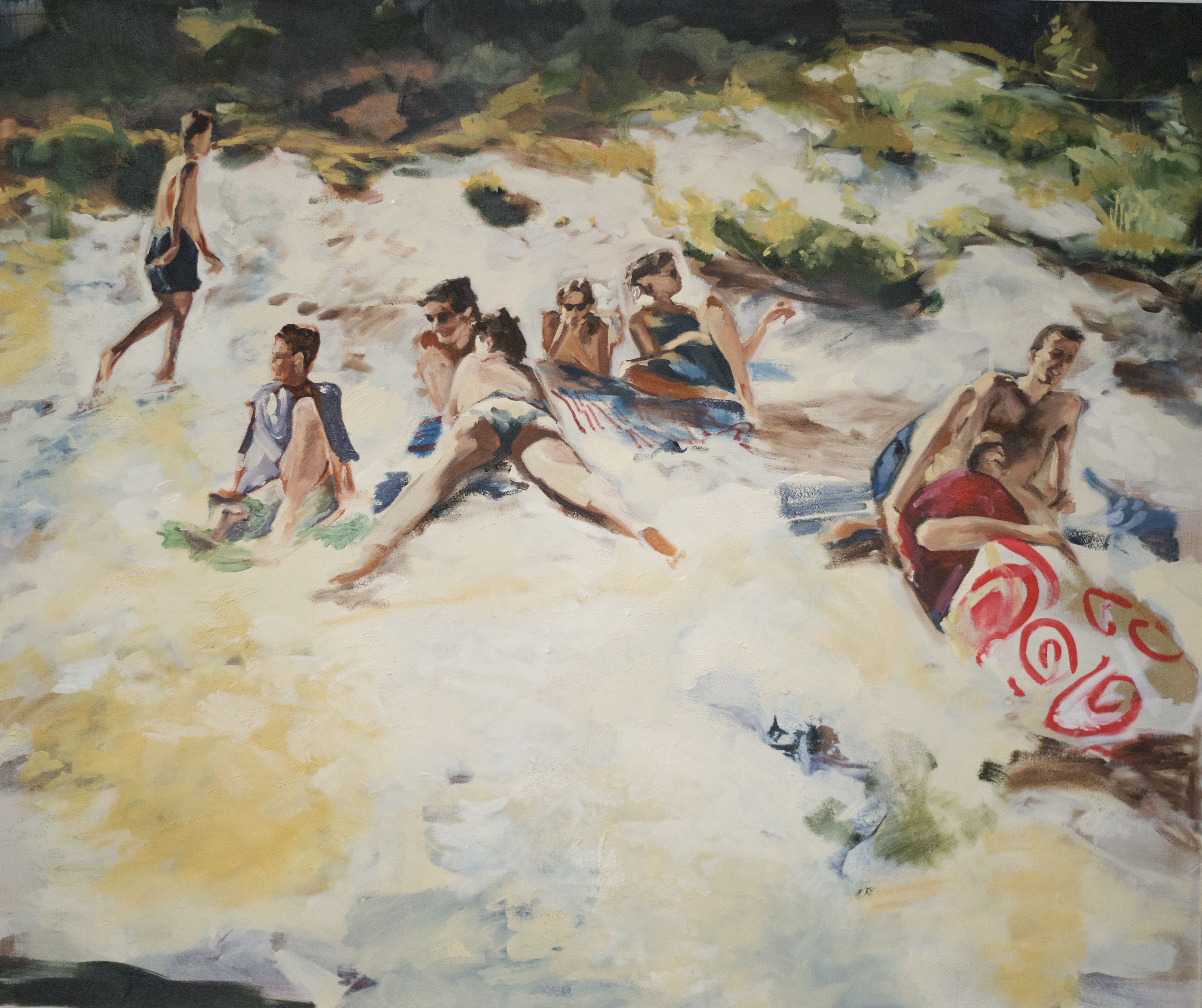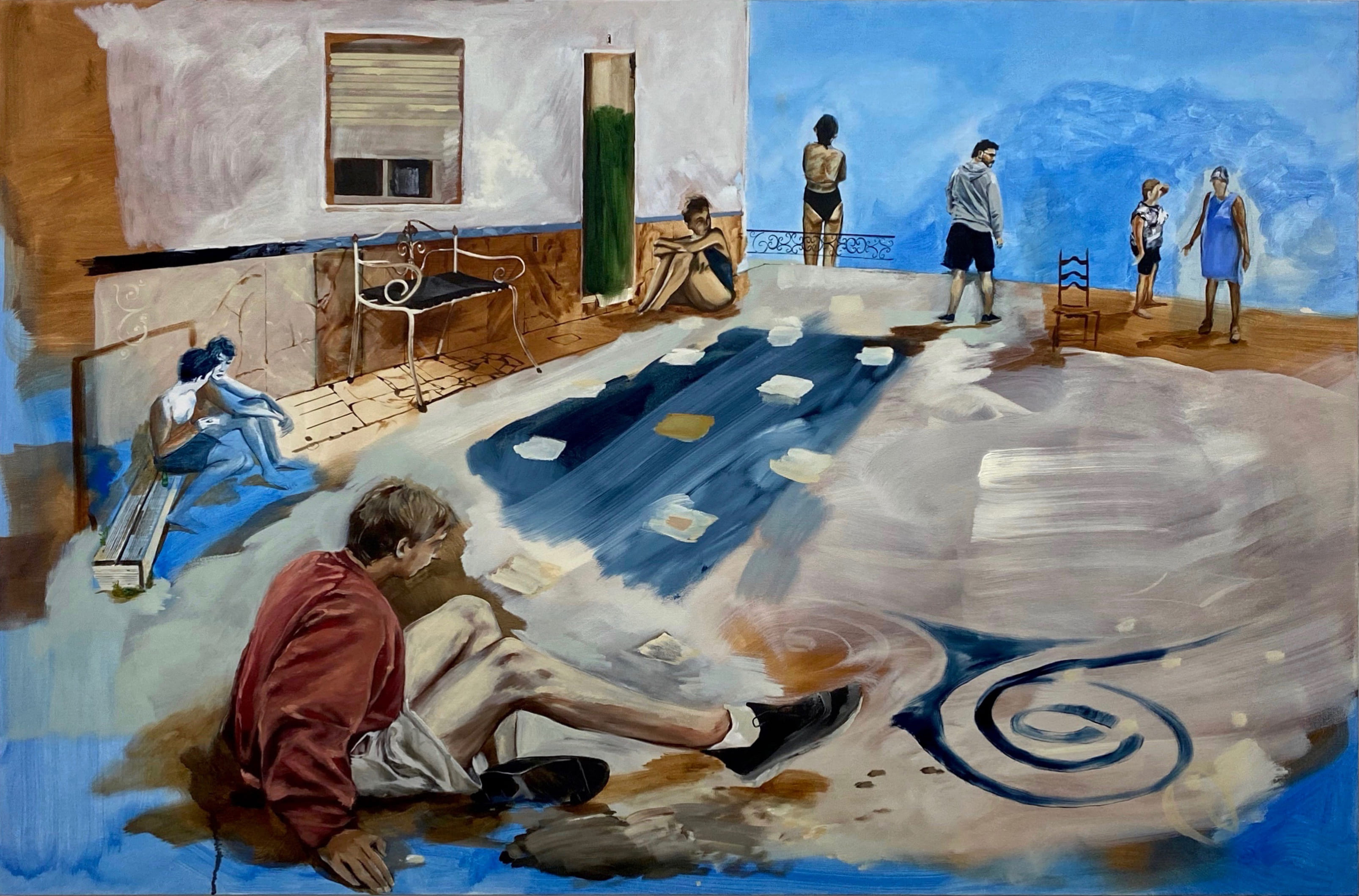 Like the uncanny effect of an iphone live photo, the fiddly brushwork of my paintings carries a disquiet movement, a jitter which alludes to the instability of the memory evoked. Family collections and found photos are studied and collaged into something new. As well as the depictions of people and their settings, they become a reflection on time, place, and being.