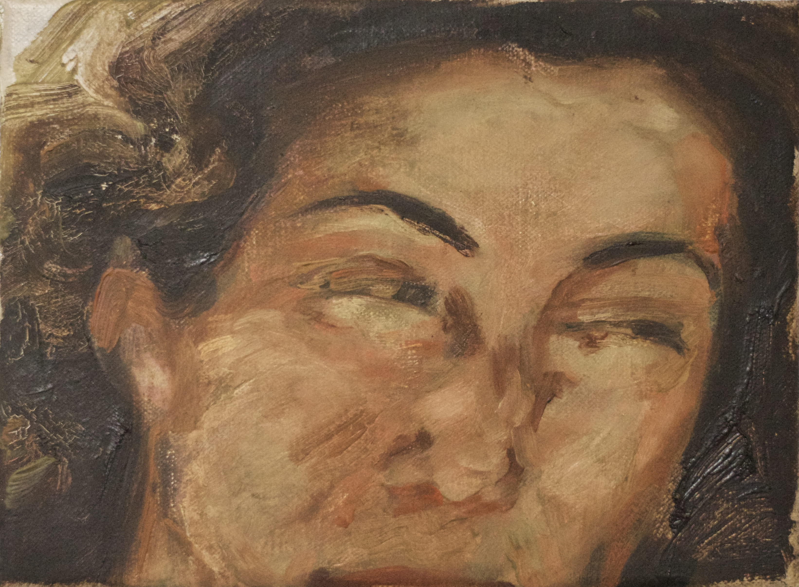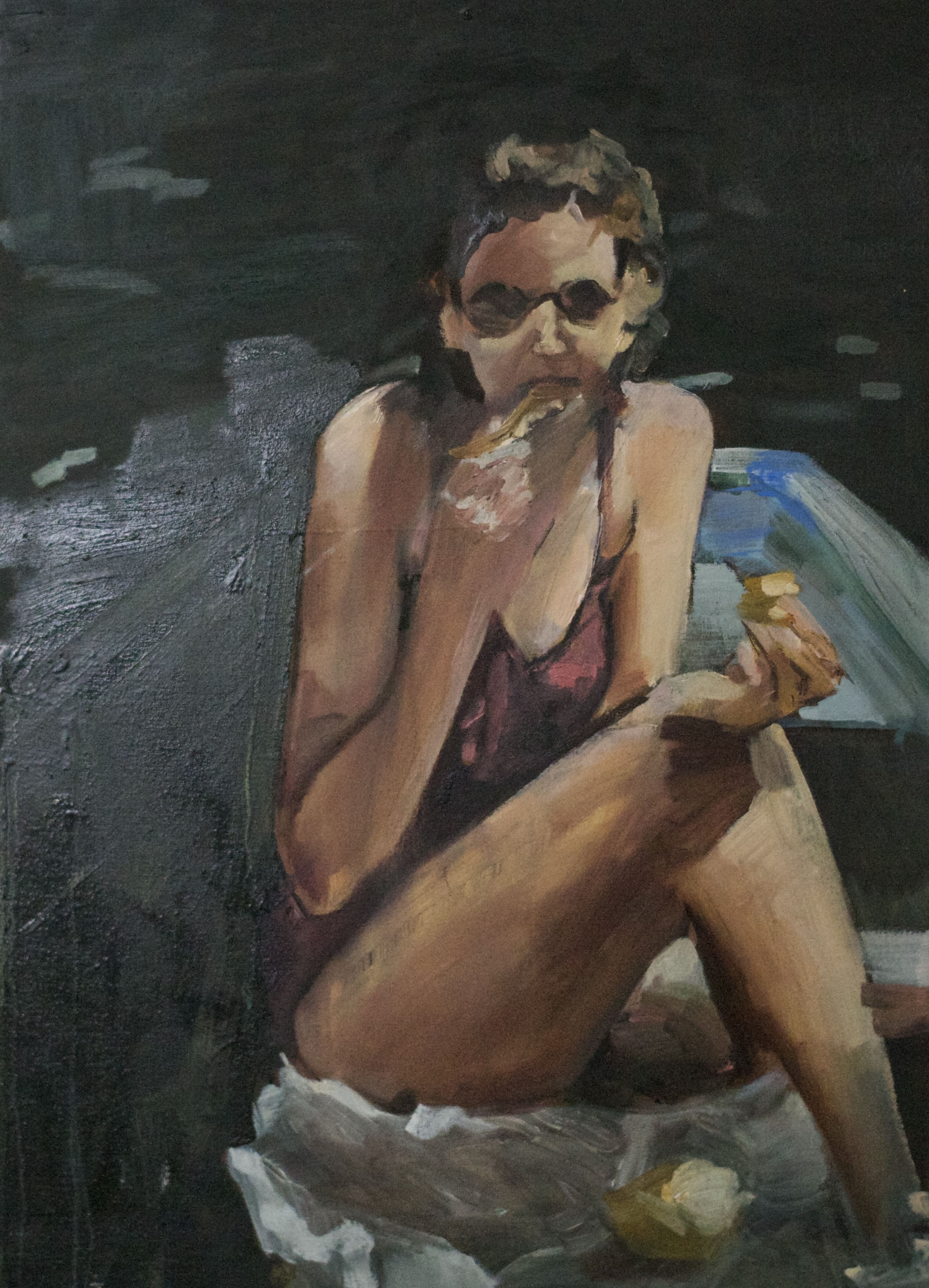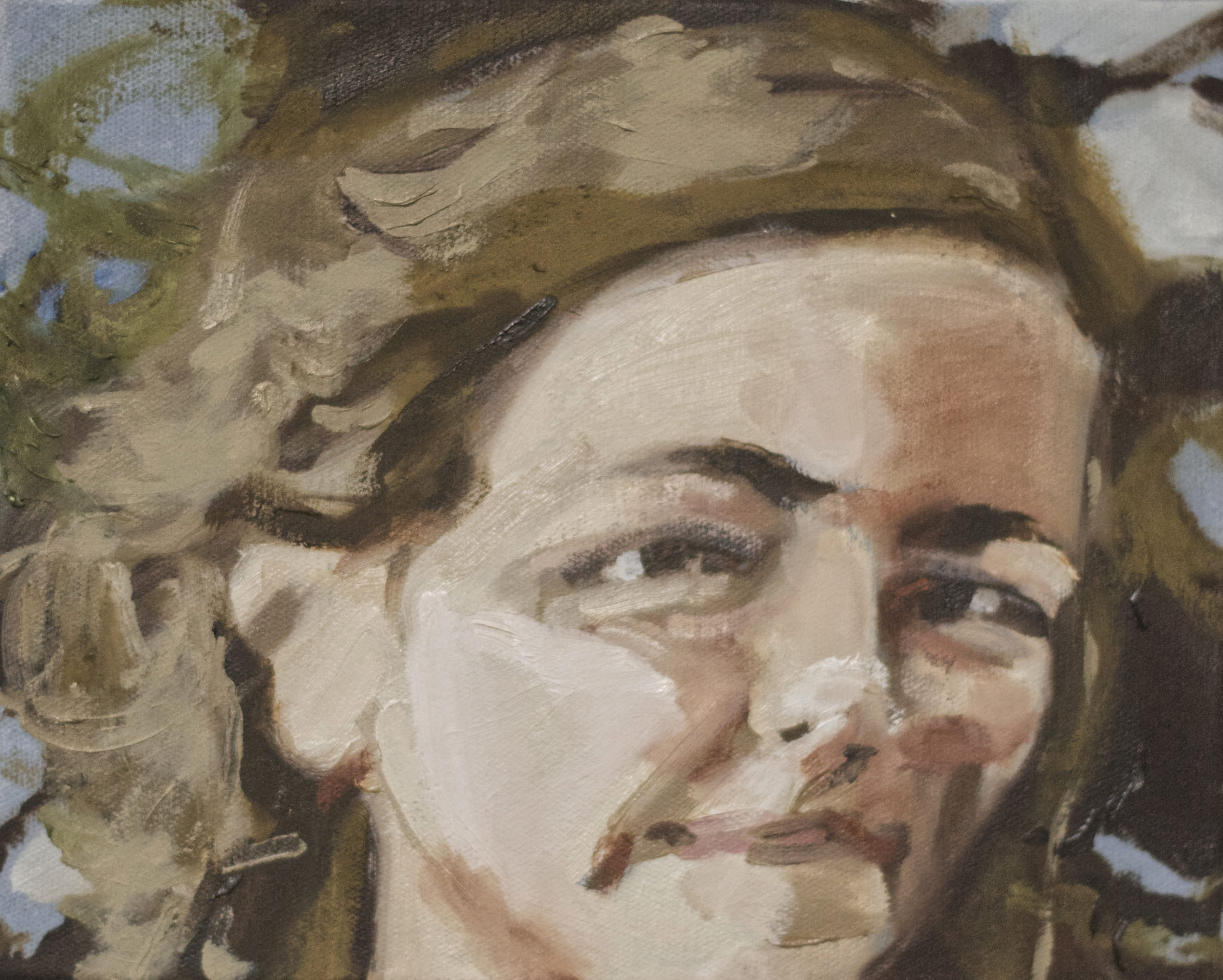 Like the uncanny effect of an iphone live photo, the fiddly brushwork of my paintings carries a disquiet movement, a jitter which alludes to the instability of the memory evoked. Family collections and found photos are studied and collaged into something new. As well as the depictions of people and their settings, they become a reflection on time, place, and being.